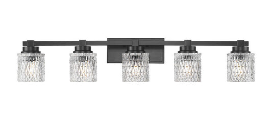 Z-Lite Jacqueline 40" 5-Light Matte Black Steel Frame Clear Diamond Shade Vanity Light