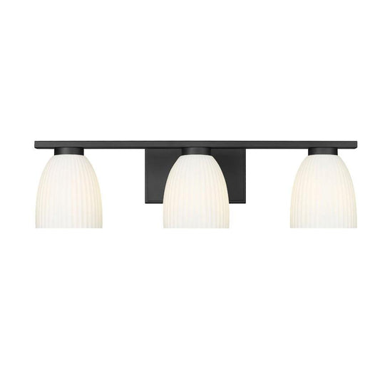 Z-Lite Naya 3-Light Medium Bulb Base Matte Black Steel Frame Matte Opal Glass Shade Vanity Light
