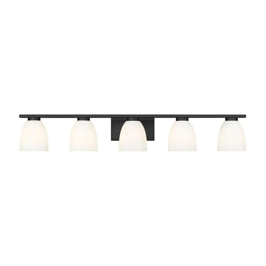 Z-Lite Naya 5-Light Medium Bulb Base Matte Black Steel Frame Matte Opal Glass Shade Vanity Light