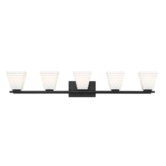 Z-Lite Kendrick 39" 5-Light Matte Black Steel Vanity Light With Matte Opal Glass Shade