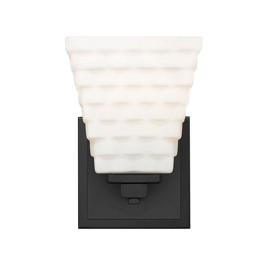 Z-Lite Idris 5" 1-Light LED-Integrated Matte Black Steel Opal White Glass Shade Wall Sconce
