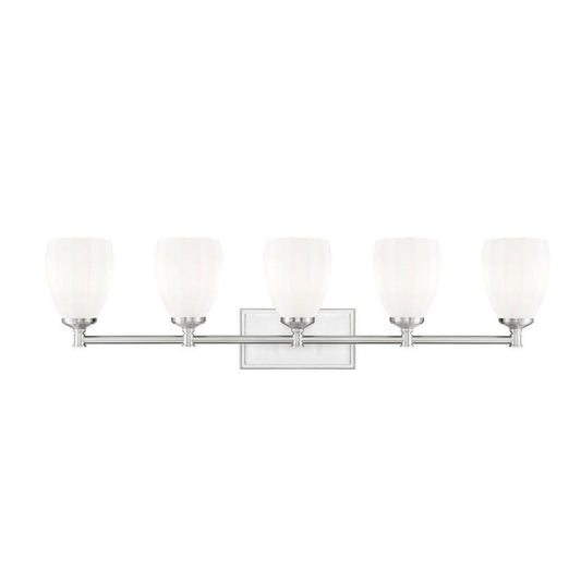 Z-Lite Naya 5-Light Medium Bulb Base Brushed Nickel Steel Frame Matte Opal Glass Shade Vanity Light