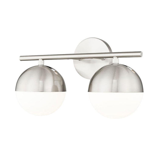 Z-Lite Realm Sphere 16" 2-Light Medium Base Brushed Nickel Steel Matte Opal Glass Shade Vanity Lighting