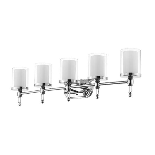 Z-Lite Argenta 43" 5-Light Clear Glass and Matte Opal Shade Chrome Frame Finish Vanity Light