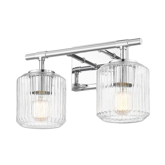 Z-Lite Landon 14" 2-Light Chrome Clear Ribbed Glass Shade Vanity Light