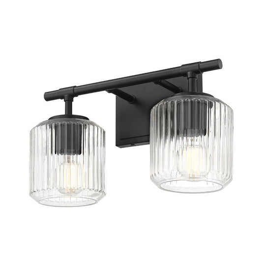 Z-Lite Landon 14" 2-Light Matte Black Clear Ribbed Glass Shade Vanity Light
