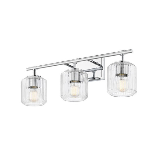 Z-Lite Landon 24" 3-Light Chrome Clear Ribbed Glass Shade Vanity Light