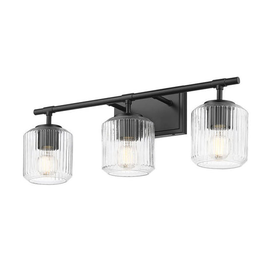 Z-Lite Landon 24" 3-Light Matte Black Clear Ribbed Glass Shade Vanity Light