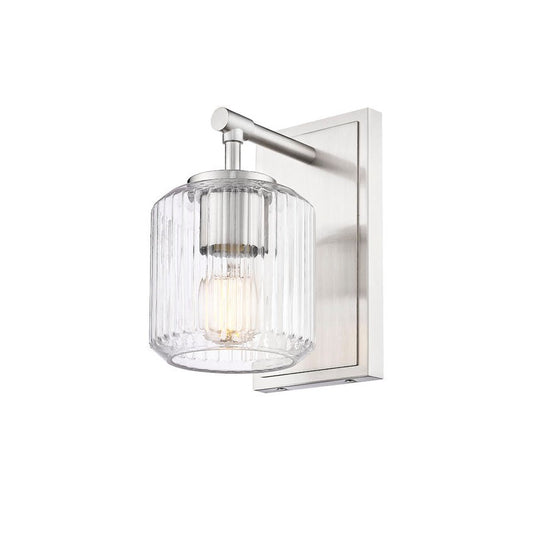 Z-Lite Landon 5" 1-Light Brushed Nickel Clear Ribbed Glass Shade Wall Sconce