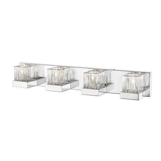 Z-Lite Fallon 28" 4-Light Chrome Vanity Light With Clear Ribbed and Frosted Crystal Shade