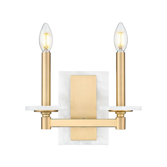 Z-Lite Kaden 2-Light Candelabra Bulb Base Modern Gold Steel Frame Stone Alabaster Shade Wall Sconce