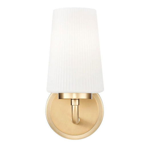 Z-Lite Naya 1-Light Medium Bulb Base Modern Gold Steel Frame Matte Opal Glass Shade Wall Sconce