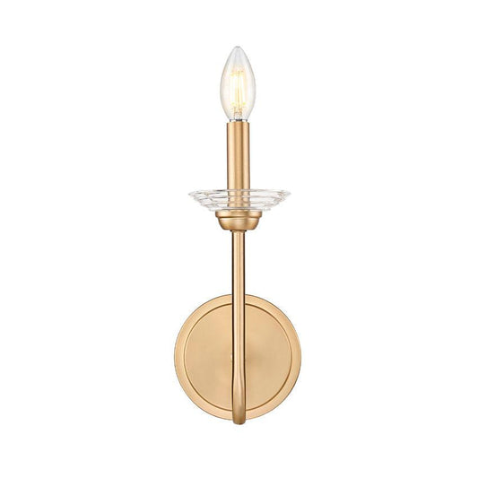 Z-Lite Allistair 1-Light Candelabra Bulb Base Modern Gold Steel Frame Clear Ribbed Glass Shade Wall Sconce