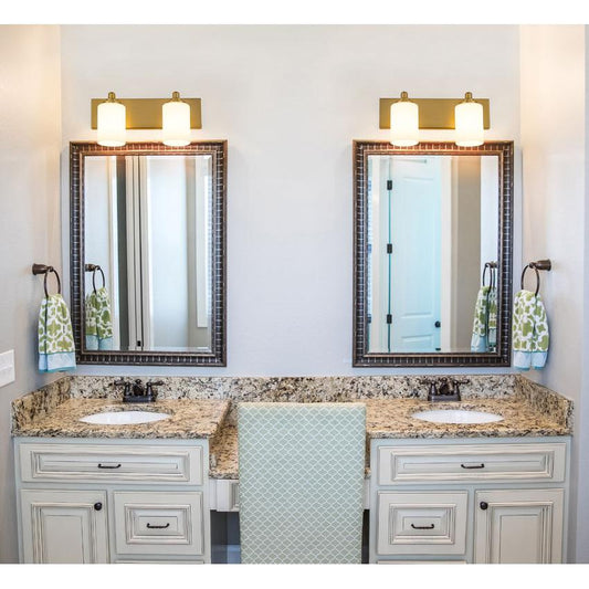 Z-Lite Oren 2-Light Medium Bulb Base Modern Gold Steel Frame Matte Opal Glass Shade Vanity Light
