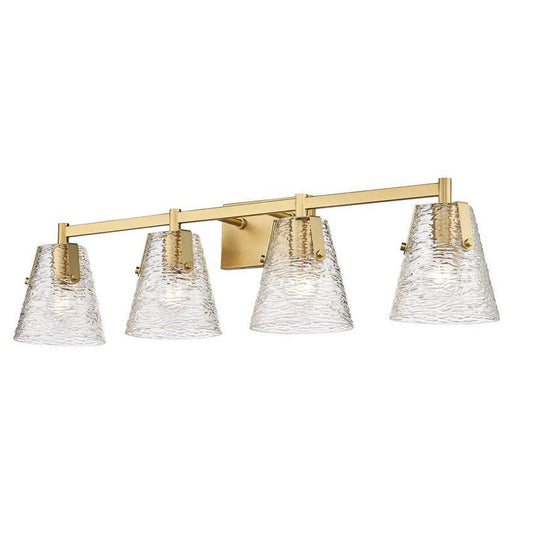 Z-Lite Analia 36" 4-Light Modern Gold and Clear Ribbed Glass Shade Vanity Light