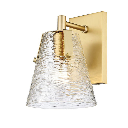 Z-Lite Analia 7" 1-Light Modern Gold and Clear Ribbed Glass Shade Wall Sconce