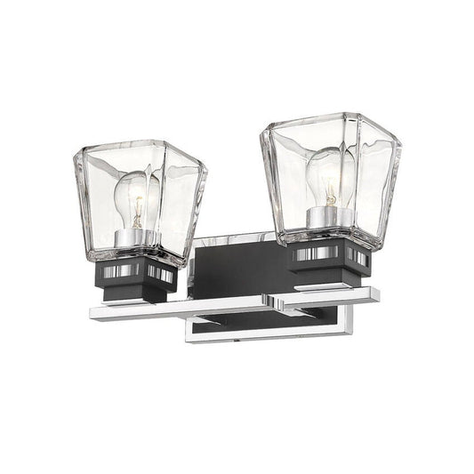 Z-Lite Jackson 14" 2-Light Chrome and Matte Black Vanity Light With Clear Glass Shade