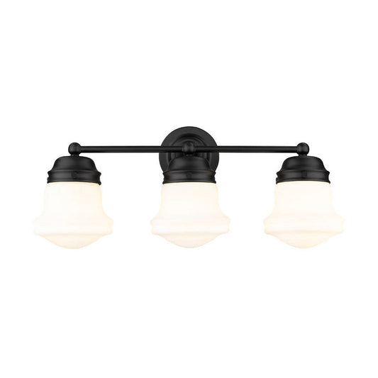 Z-Lite Vaughn 23" 3-Light Matte Black Vanity Light With Matte Opal Glass Shade