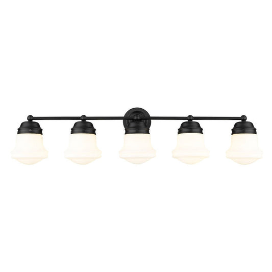 Z-Lite Vaughn 41" 5-Light Matte Black Vanity Light With Matte Opal Glass Shade