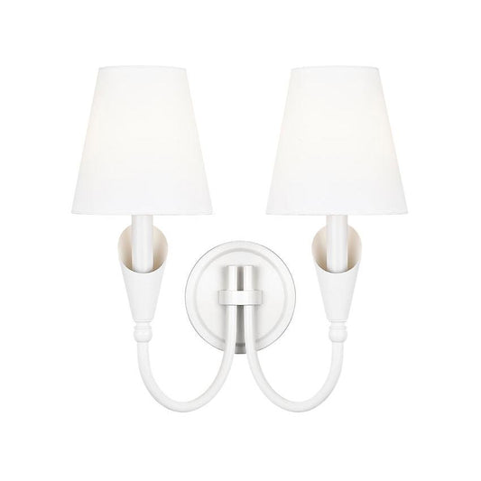 Z-Lite Claudelle 2-Light Candelabra Bulb Base Tundra White Steel Frame White Fabric Shade Wall Sconce