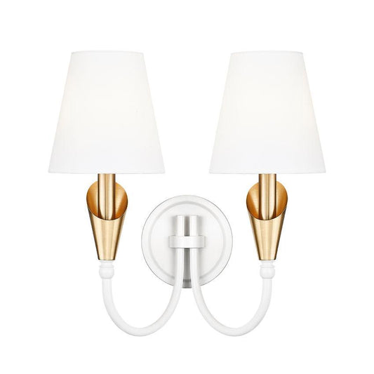Z-Lite Claudelle 2-Light Candelabra Bulb Base Tundra White and Modern Gold Steel Frame White Fabric Shade Wall Sconce