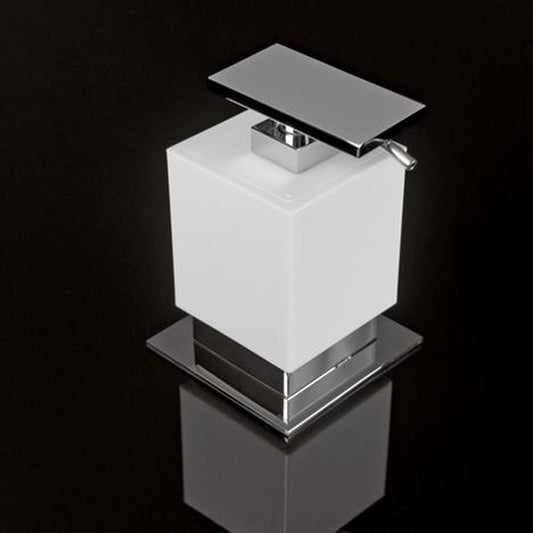 ZEN Design Diamond 4" x 4" x 4" Polished Chrome / White Wall-Mounted Soap Dispenser