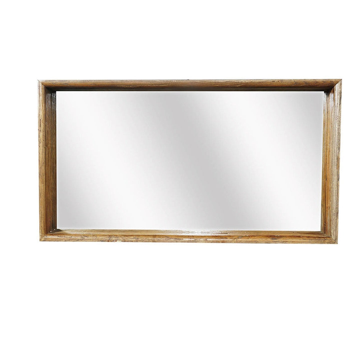 Accent your coastal, country or industrial decor with this wall mirror featuring a frame crafted from recycled wood. With its rustic appearance and natural finish, this rectangular mirror looks great in casual rooms.