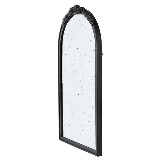 Taking a timeless silhouette and transforming it into a new modern classic, is exactly how the Bingley Mirror is designed. A hand carved rose embellishment on the top arch of the mirror extends outwards to line the top of the mirror, to encase a subtle antiqued mirror. Combined with the neutral black coloration of the frame, the Bingley Mirror is the perfect addition to any classic design.