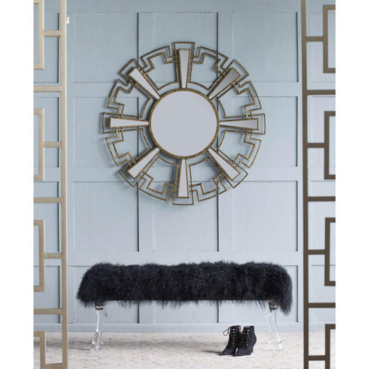 The perfect size for a gallery wall, the Rhodes Starburst Cafe Mirror brings a Grecian element to your living space! A gold geometric starburst frames a circular mirror and eight sun rays. Try the Rhodes mirror indoors or on a covered patio for a classic vintage, glamourous touch.