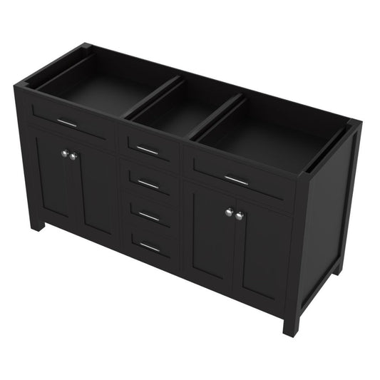 Alya Bath Norwalk Collection 60-inch double bathroom vanity is built with solid wood construction and offers lifetime reliability. This free-standing vanity includes four soft-closing doors and four soft-closing drawers with brushed nickel hardware that adds a modern appeal. This transitional vanity has cabinet space for all of your storage needs.