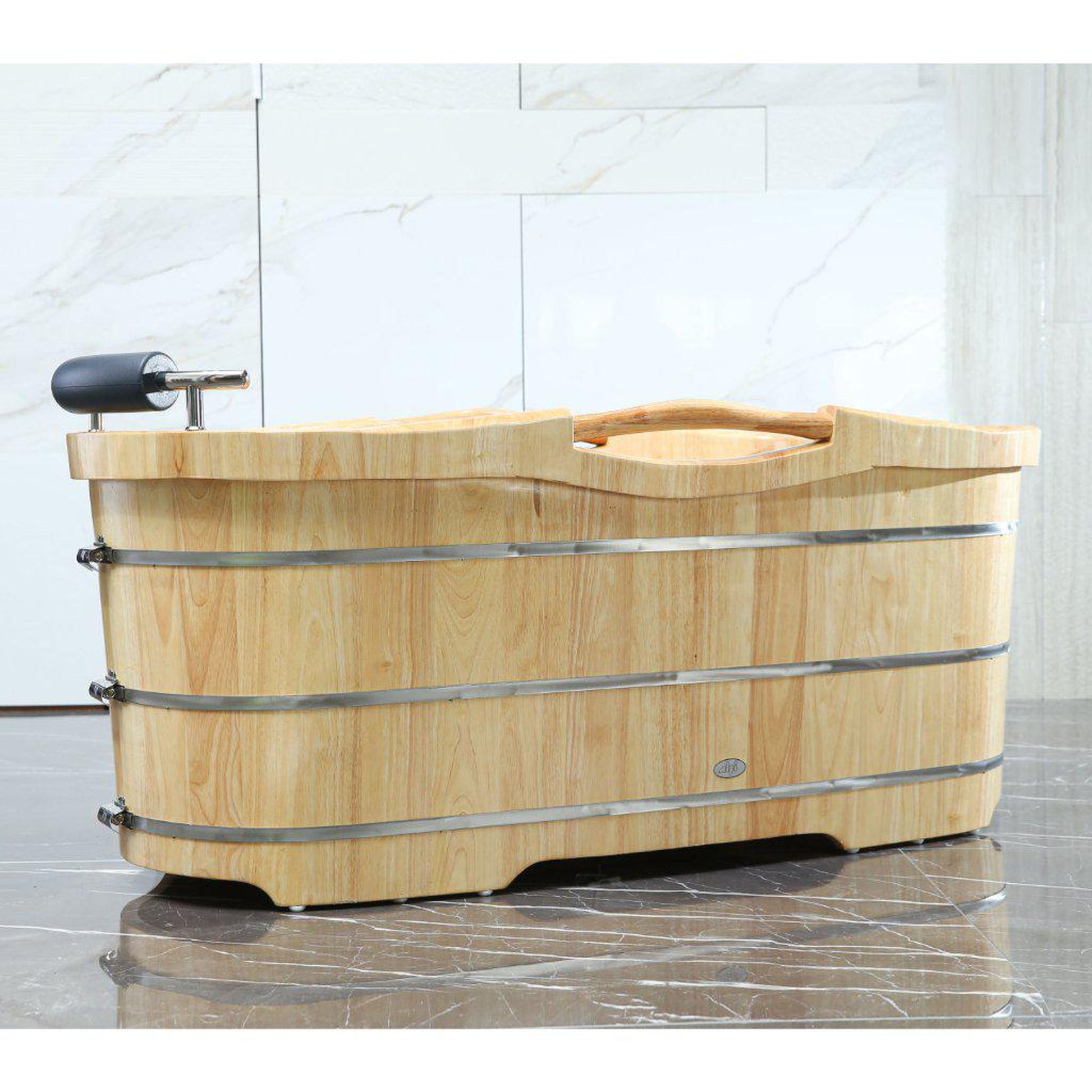 ALFI Brand AB1163 61" One Person Freestanding Soaking Rubber Wooden Bathtub With Cushion Headrest