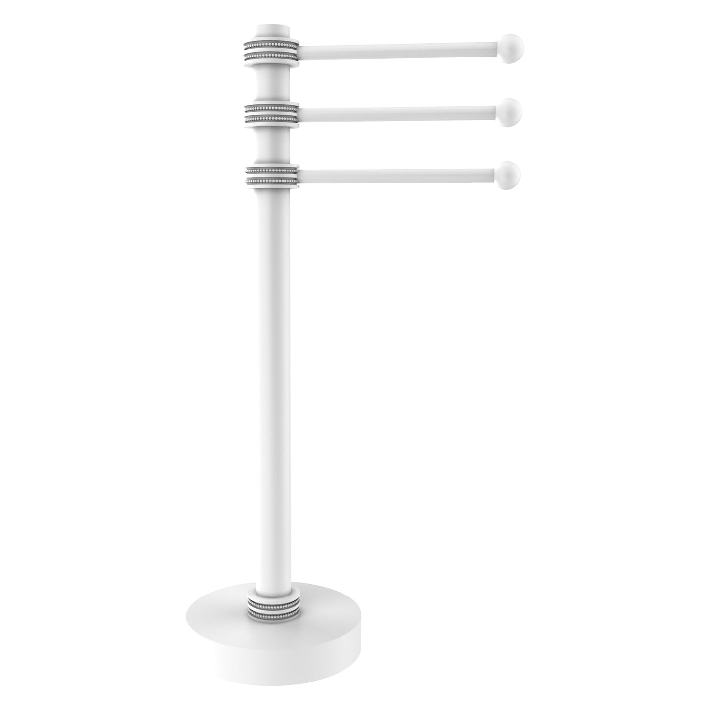 Allied Brass 973D 9" x 8" Matte White Solid Brass Vanity Top 3-Swing Arm Guest Towel Holder With Dotted Accents