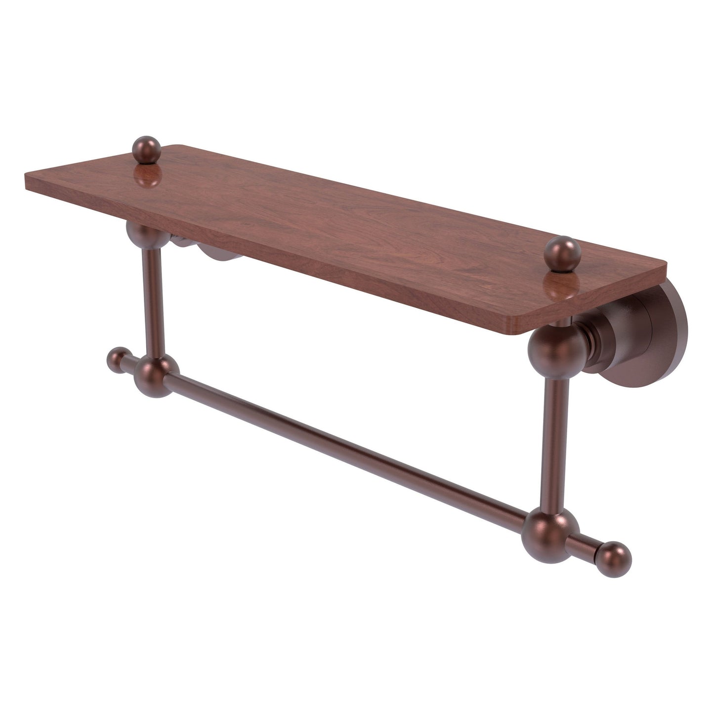 Allied Brass Astor Place 16" x 5" Antique Copper Solid Brass Solid IPE Ironwood Shelf With Integrated Towel Bar