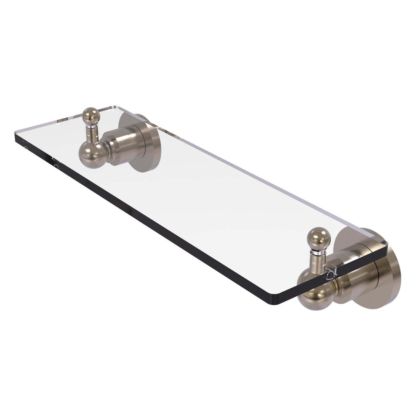 Add space and organization to your bathroom with this simple, contemporary style glass shelf. Featuring tempered, beveled-edged glass and solid brass hardware this shelf is crafted for durability, strength and style. One of the many coordinating accessories in the Allied Brass Astor Place Collection, this subtle glass shelf is the perfect complement to your bathroom decor.