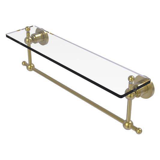 Add space and organization to your bathroom with this simple, contemporary style glass shelf. Featuring tempered, beveled-edged glass and solid brass hardware this shelf is crafted for durability, strength and style. Integrated towel bar provides space for your favorite decorative towels or for your everyday use. One of the many coordinating accessories in the Allied Brass Collection of products, this subtle glass shelf is the perfect complement to your bathroom decor.