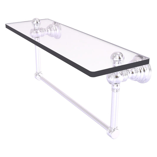 Allied Brass Carolina 16" x 5.54" Satin Chrome Solid Brass Glass Shelf With Integrated Towel Bar