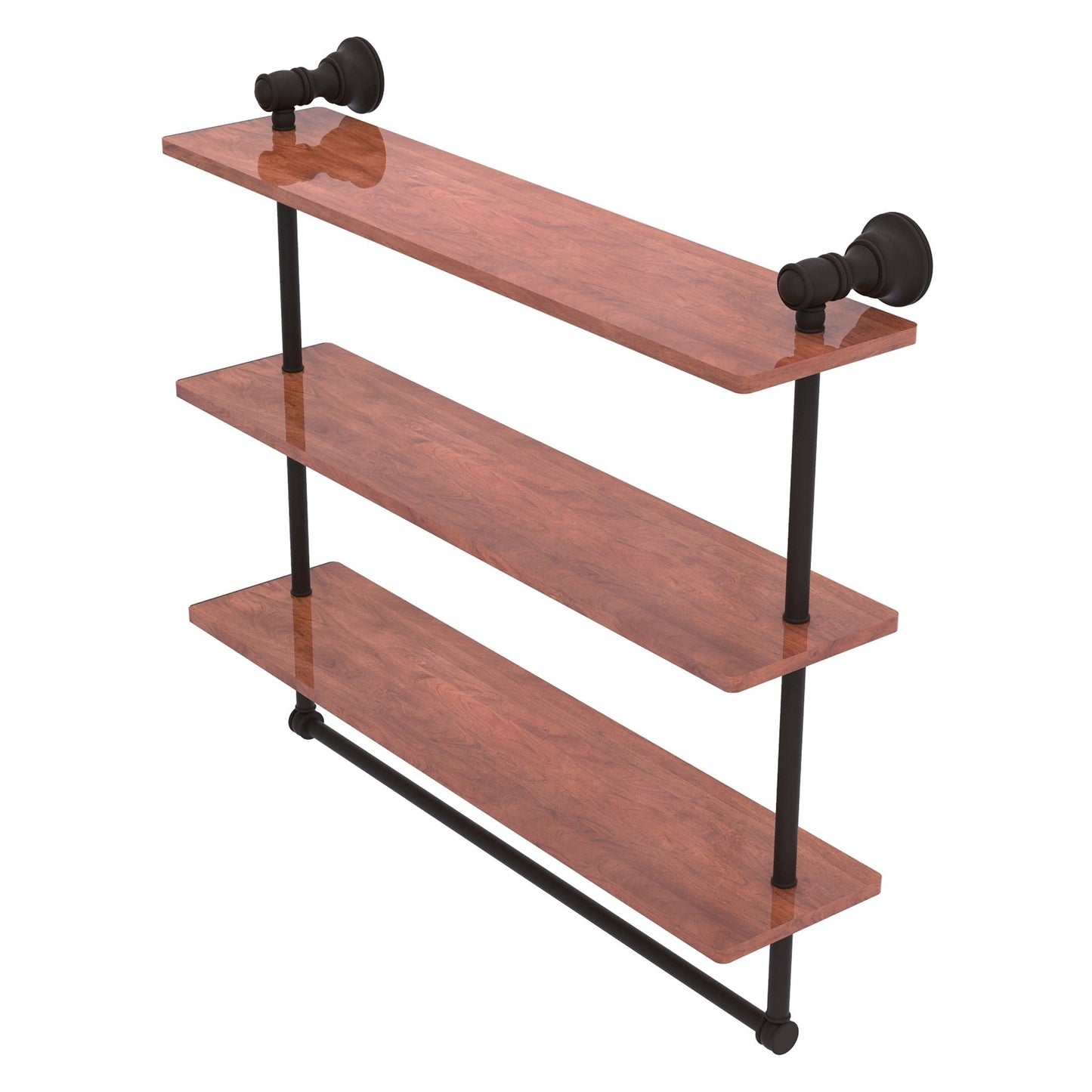 Allied Brass Carolina 22" x 5.54" Oil Rubbed Bronze Solid Brass Triple Wood Shelf With Towel Bar