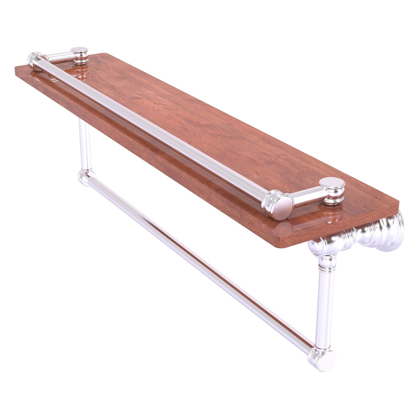 Allied Brass Carolina 22" x 5.54" Satin Chrome Solid Brass Wood Gallery Shelf With Towel Bar