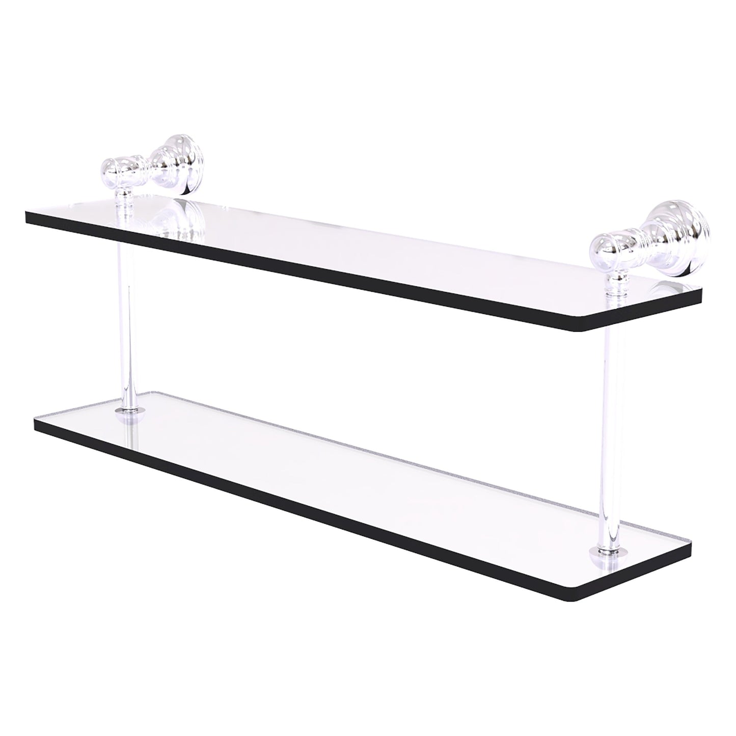 Reimagine your bathroom with this finely crafted double glass shelf. The 2 sturdy glass shelves provide plenty of space for your items. Traditional style and superior quality resonate from this hand crafted accessory. Featuring thick, beveled-edge glass and solid brass hardware this shelf is crafted for durability strength and style. One of the many coordinating accessories in the Allied Brass Collection of accessories, this double glass shelf is the perfect complement to your bathroom decor.