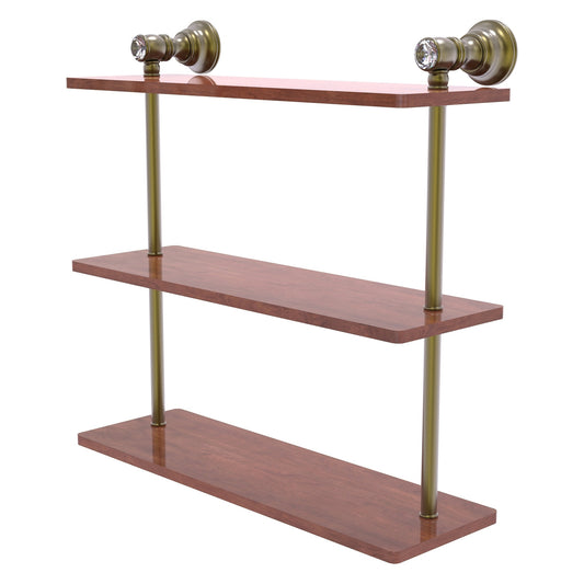 Allied Brass Carolina Crystal 16" x 5.54" Antique Brass Solid Brass Triple Wood Shelf