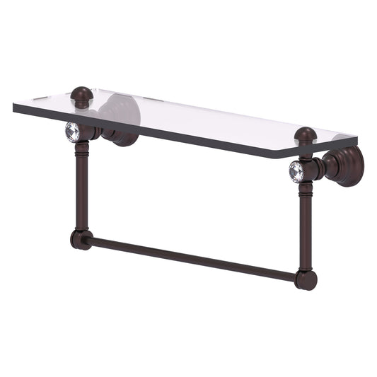 Allied Brass Carolina Crystal 16" x 5.54" Antique Bronze Solid Brass Glass Shelf With Integrated Towel Bar