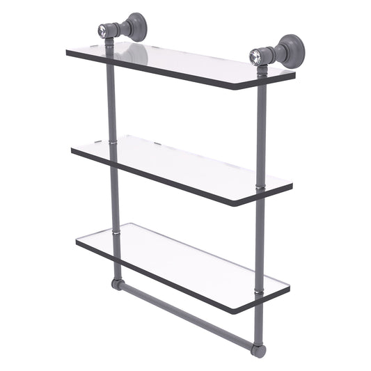 Allied Brass Carolina Crystal 16" x 5.54" Matte Gray Solid Brass Triple Glass Shelf With Towel Bar