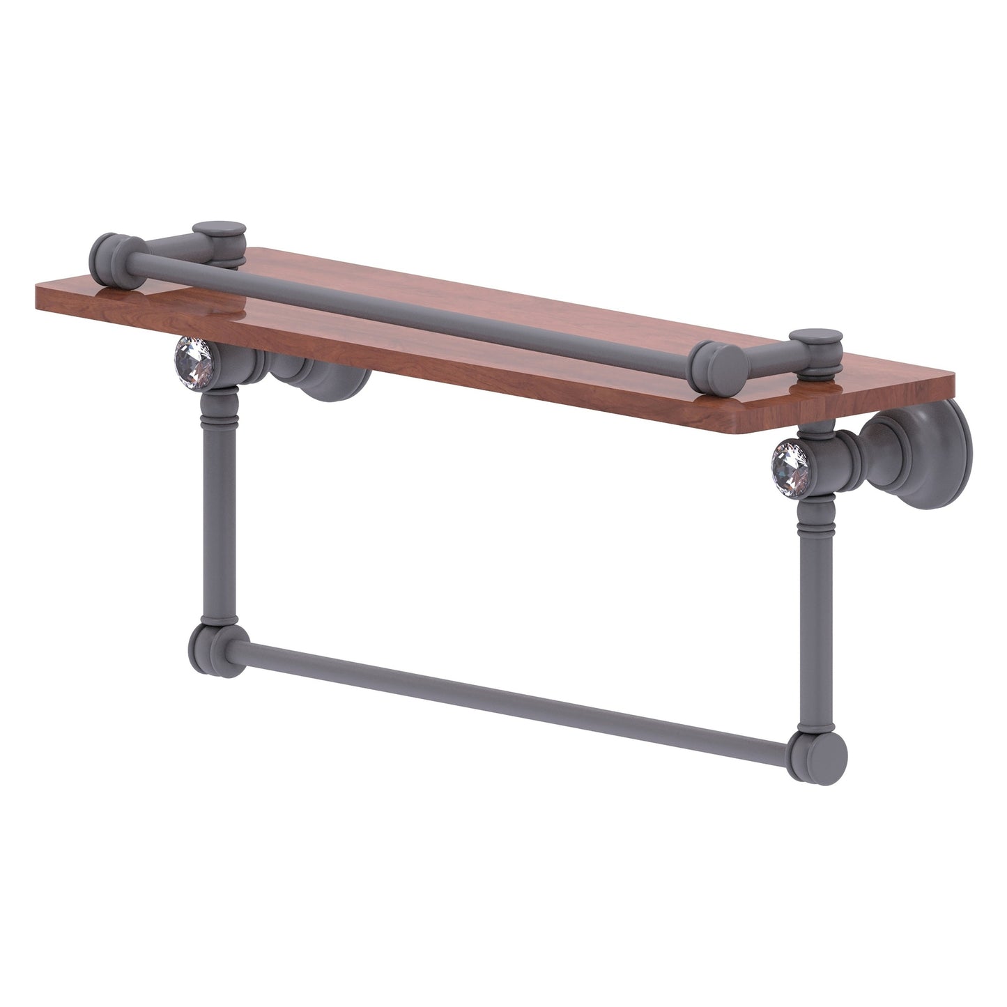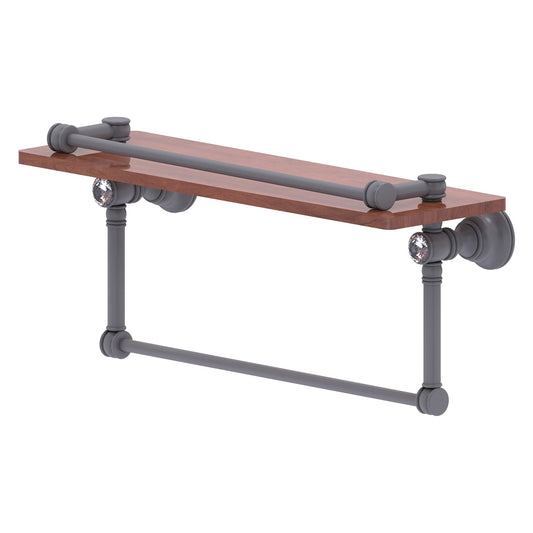Allied Brass Carolina Crystal 16" x 5.54" Matte Gray Solid Brass Wood Shelf With Towel Bar