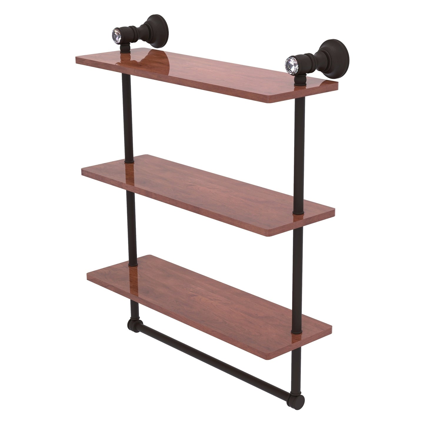 Allied Brass Carolina Crystal 16" x 5.54" Oil Rubbed Bronze Solid Brass Triple Wood Shelf With Towel Bar