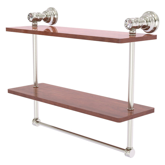 Allied Brass Carolina Crystal 16" x 5.54" Satin Nickel Solid Brass Double Wood Shelf With Towel Bar