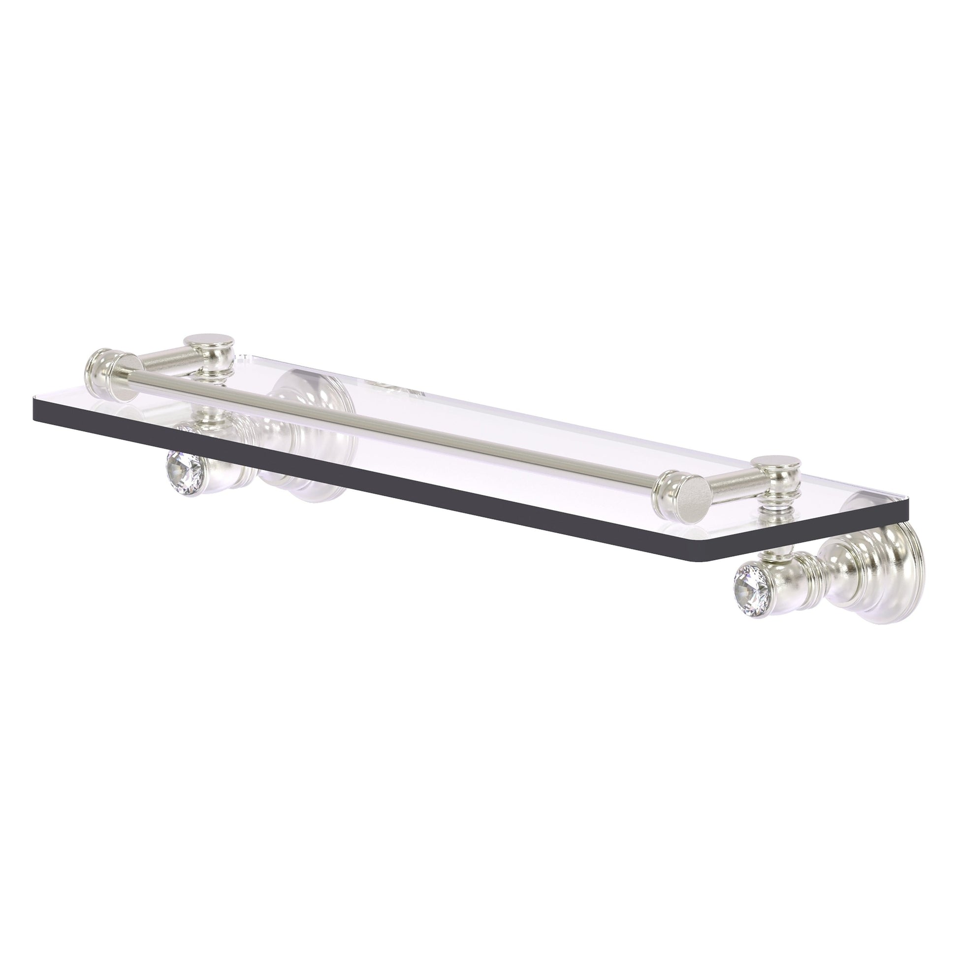 Allied Brass Carolina Crystal 16" x 5.54" Satin Nickel Solid Brass Glass Shelf With Gallery Rail