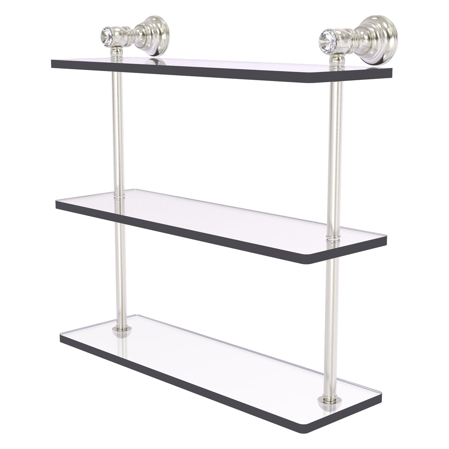 Allied Brass Carolina Crystal 16" x 5.54" Satin Nickel Solid Brass Triple Glass Shelf
