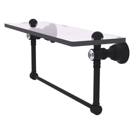 Allied Brass Carolina Crystal 22" x 5.54" Matte Black Solid Brass Glass Shelf With Integrated Towel Bar