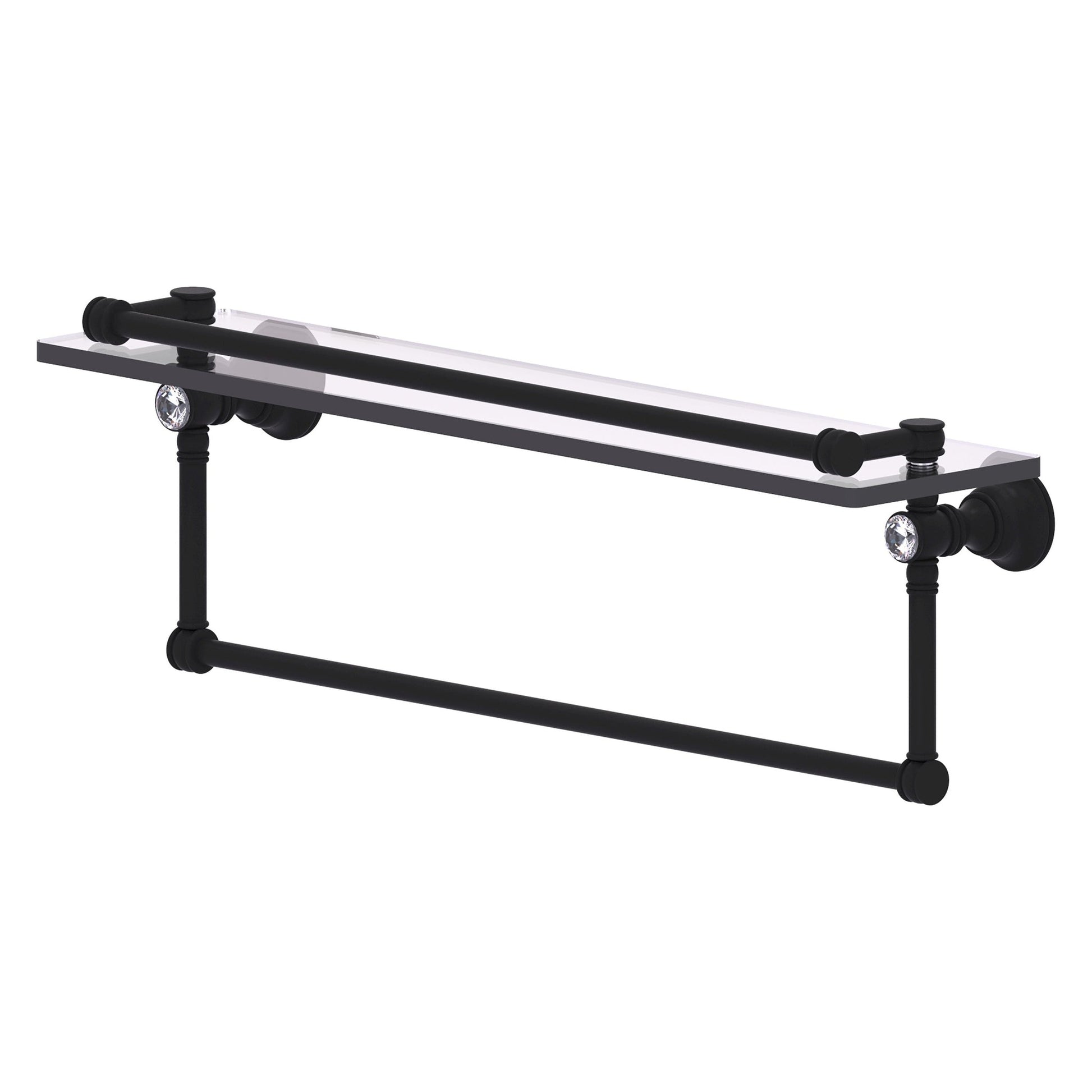 Allied Brass Carolina Crystal 22" x 5.54" Matte Black Solid Brass Glass Shelf With Towel Bar