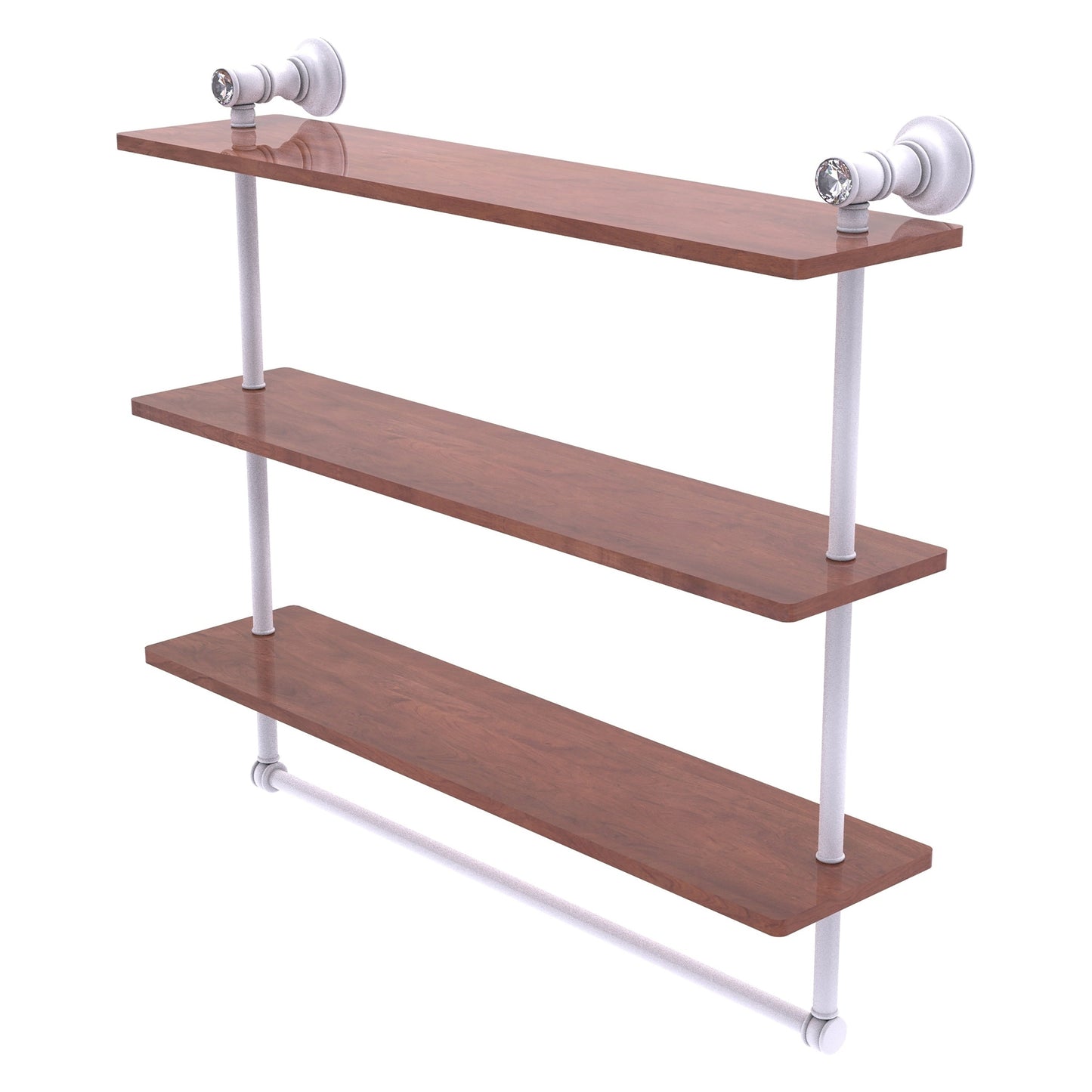 Allied Brass Carolina Crystal 22" x 5.54" Matte White Solid Brass Triple Wood Shelf With Towel Bar